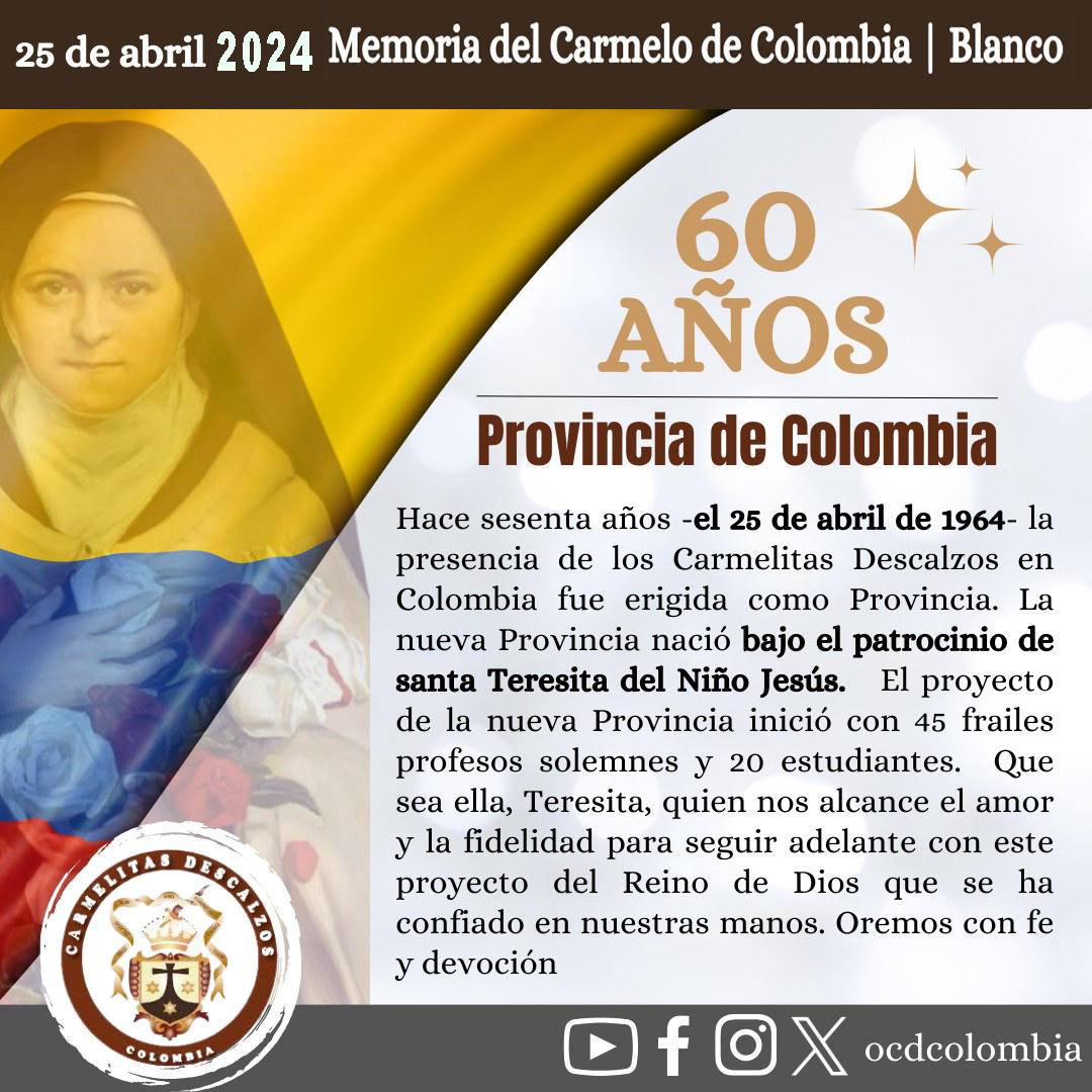 En este 2.021, la provincia Carmelitana de Santa Teresita, de Colombia, celebra tres aniversarios importantes.