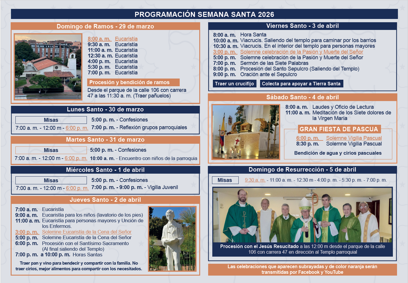 Prográmate con nosotros para vivir la Semana Santa en comunidad. Habrá transmisión para quienes por su estado de salud no pueden trasladarse al templo.