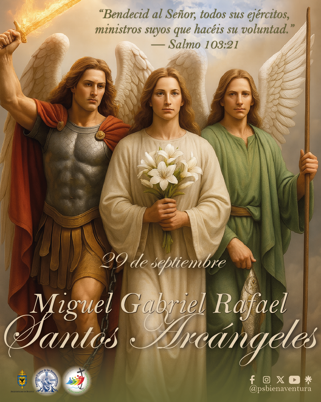 Con confianza y fe, hoy nos unimos como Iglesia católica, a la celebración de los Santos Arcángeles Miguel, Gabriel y Rafael, quienes nos recuerdan que el amor de Dios se hace cercano y protector. Ellos son signo de la presencia activa de Dios en nuestra vida, nos protegen, nos anuncian y nos sanan: