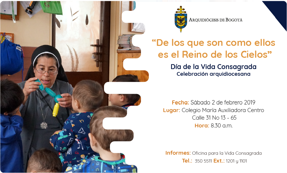Centro de información Yo quiero Noticias Boletines Eventos Artículos Canonización Mensajes del Señor Cardenal Cartas pastorales Homilías Mensajes La voz del pastor Documentos del Vaticano NoticiasDía de la Vida Consagrada - Celebración arquidiocesana1 de Febrero de 2019La Arquidiócesis de Bogotá, desde la Coordinación de Vida Consagrada, invitan a todos los miembros de la Vida Consagrada a la Celebración Arquidiocesana que tendrá…A continuación encontrará ubicación del Colegio: Like 0 Dislike 0 Noticias relacionadas Arquidiócesis de Bogotá celebró el Día del Trabajador Católico 🙏🏻 ✝️ Del 29 de marzo al 5 de abril Nuestra fidelidad genera futuro