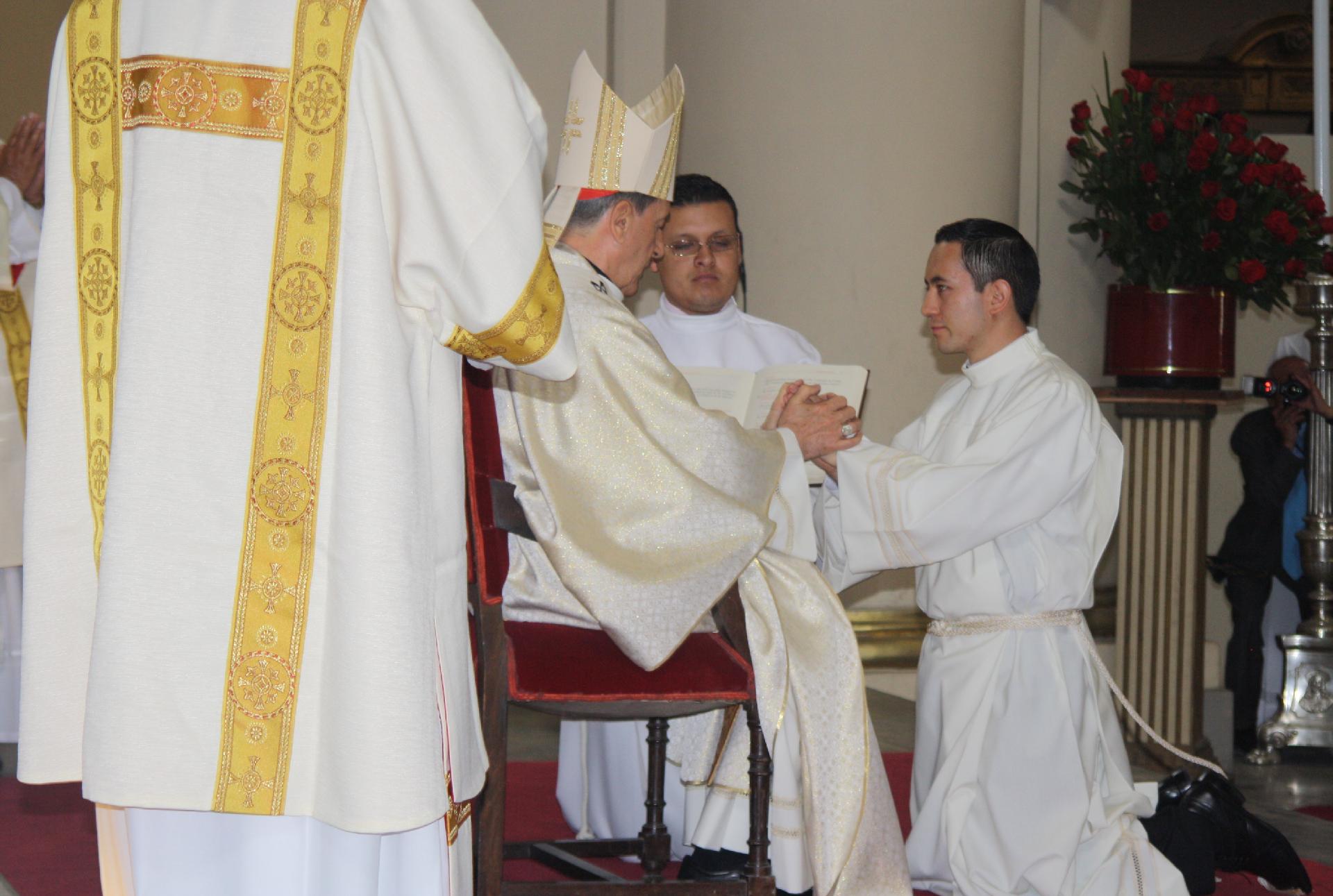 Uno a uno se acercó ante el Señor cardenal arrodillándose ante él y poniendo sus manos juntas, prometiendo respeto y obediencia al Obispo diocesano y a su superior legítimo.