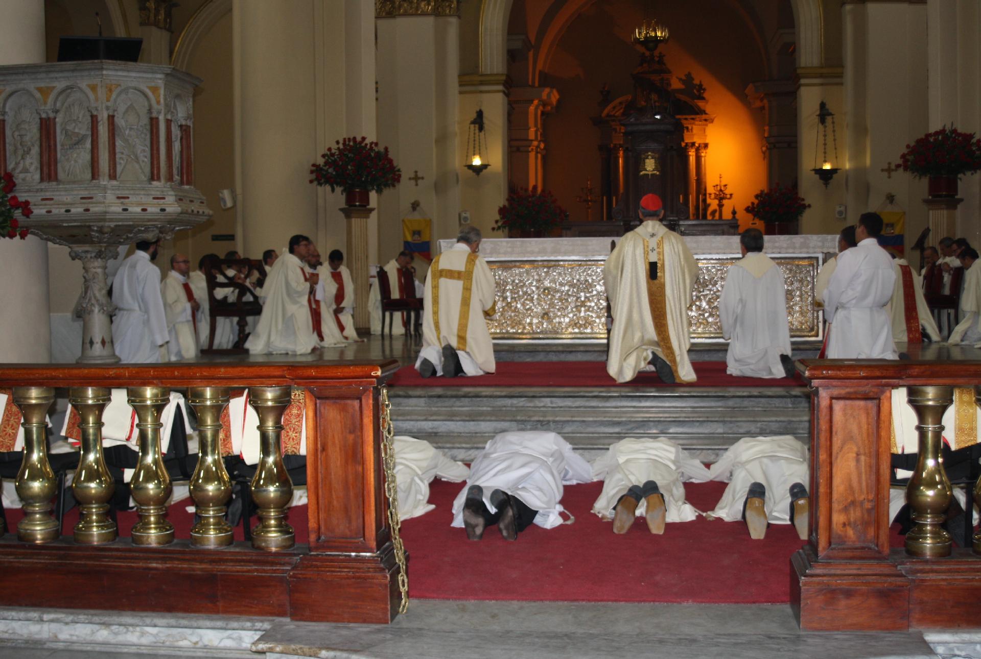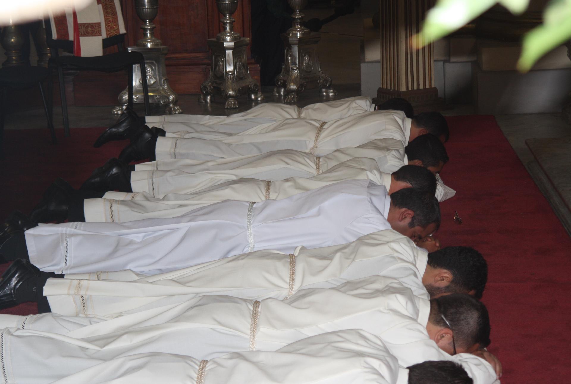 Como uno de los actos más significativos se pide a todos para que oren a Dios Padre para que derrame bondadosamente la gracia de su bendición sobre estos jóvenes que han llamado al Orden de los diáconos y al Orden de los presbíteros. Entonces ellos se postran en tierra, dejando su vida y muriendo a su mundo entregando todo por Cristo y levantándose consagrados.