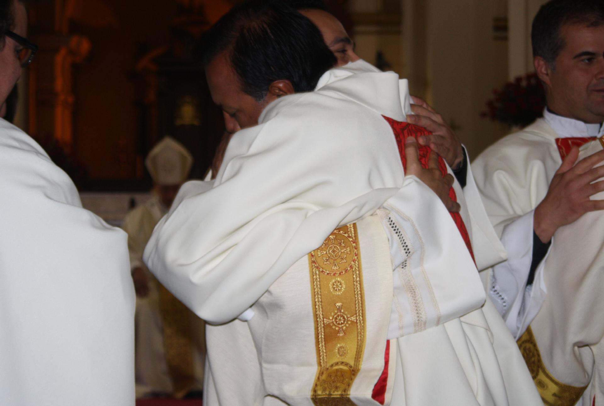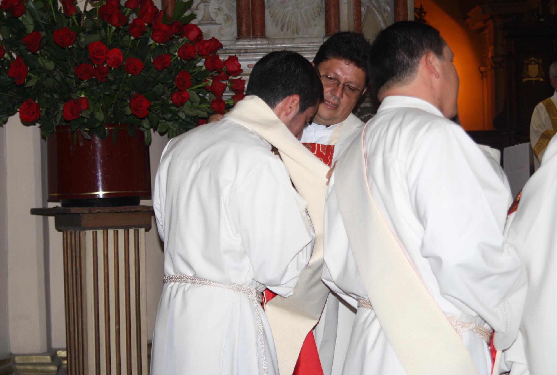Los nuevos diáconos ya han recibido el primer grado del sacramento del orden sacerdotal. Se les ha impuesto las manos para el ministerio, es decir, para asistir al obispo y a los sacerdotes en la predicación de la Palabra de Dios, en la distribución de la comunión y en las obras de la caridad. El sacramento los fortalece para que pueda desempeñar estas funciones que son esenciales en la misión de la Iglesia. Los diáconos, son un reflejo vivo de Jesucristo, que no vino a ser servido sino a servir. Pidámosle al Señor por estos jóvenes y por todos los sacerdotes quienes nos alimentan con los sacramentos y con la Palabra de Dios.