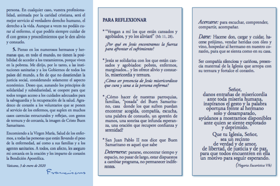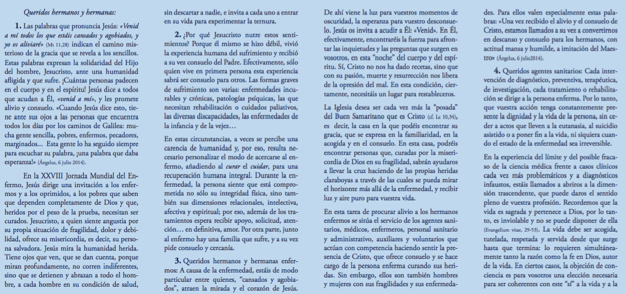 Centro de información Yo quiero Noticias Boletines Eventos Artículos Canonización Mensajes del Señor Cardenal Cartas pastorales Homilías Mensajes La voz del pastor Documentos del Vaticano NoticiasXXVIII Jornada mundial del enfermo, mensaje del Santo Padre Francisco11 de Febrero de 2020 Like 0 Dislike 0 Noticias relacionadas Arquidiócesis de Bogotá celebró el Día del Trabajador Católico 🙏🏻 ✝️ Del 29 de marzo al 5 de abril Nuestra fidelidad genera futuro
